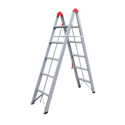 Двойна A-образна стълба с различен брой стъпки, осигуряваща стабилност и безопасност при работа на височина. Издръжлива и лесна за употреба